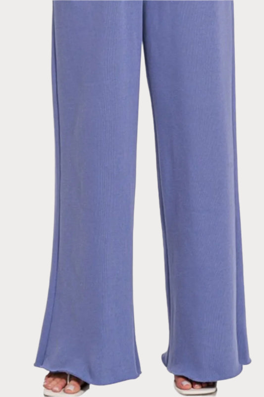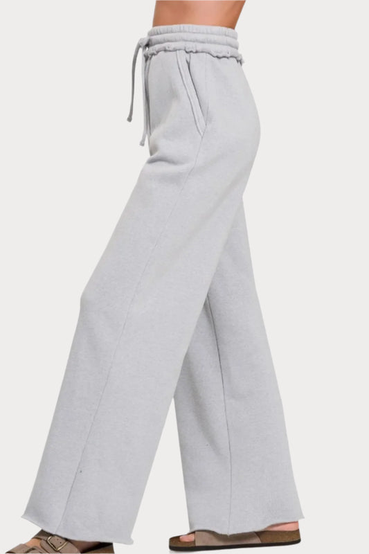 Zenana Fleece Exposed Seam Wide Leg Sweatpants
