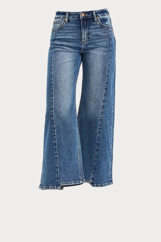 RISEN High Rise Crop Wide Leg Jeans with Step Hem