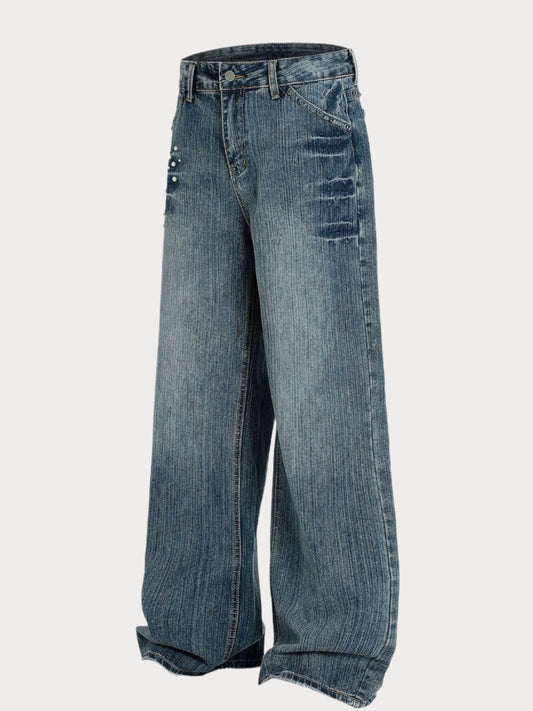 Brooklyn Republic™ Men's Vintage Wide Leg Pearl Detail Jeans
