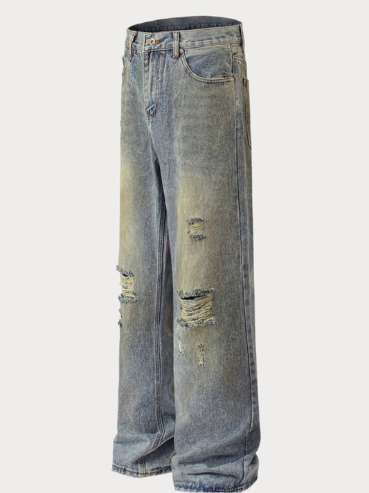 Men's Vintage Distressed Wide Leg Jeans