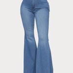 Rock a timeless silhouette with these high-waisted flare jeans that bring vintage vibes to your everyday rotation. The slightly stretchy cotton-spandex blend moves with you, while the raw hem edge keeps things fresh and modern. Pair them with your favorite tee or dress them up for a night out—versatility at its finest. Simply machine wash cold and tumble dry low to maintain that perfect worn-in look. Imported quality you'll love wearing again and again.