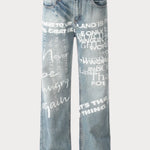Brooklyn Republic™ Men's Graffiti Text Print Straight Leg Jeans embody urban sophistication with artistic flair. Expertly crafted from a refined blend of 85% cotton, 10% polyester, and 5% viscose with a subtle stretch for enhanced comfort. The distinctive graffiti text print adorns a washed finish, creating a curated aesthetic that transitions effortlessly from day to evening. These imported straight leg jeans maintain their distinguished appearance with minimal care, reflecting the discerning taste of the modern gentleman.