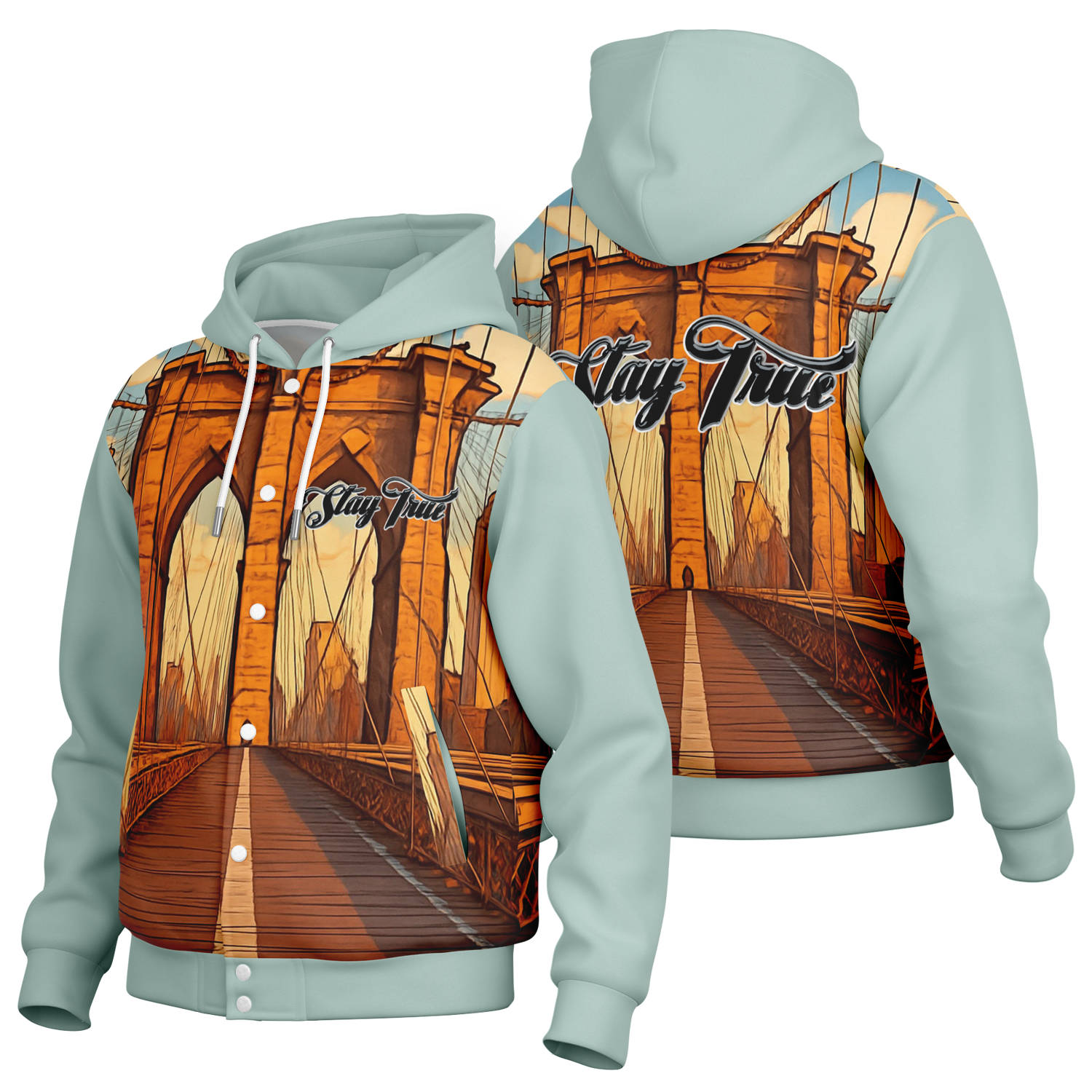STAY TRUE™ Afternoon Stroll Hooded Baseball Jacket