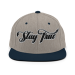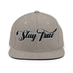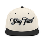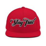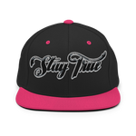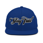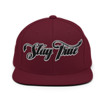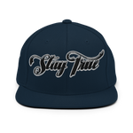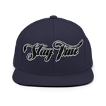 This hat is structured with a classic fit, flat brim, and full buckram. The adjustable snap closure makes it a comfortable, one-size-fits-most hat.