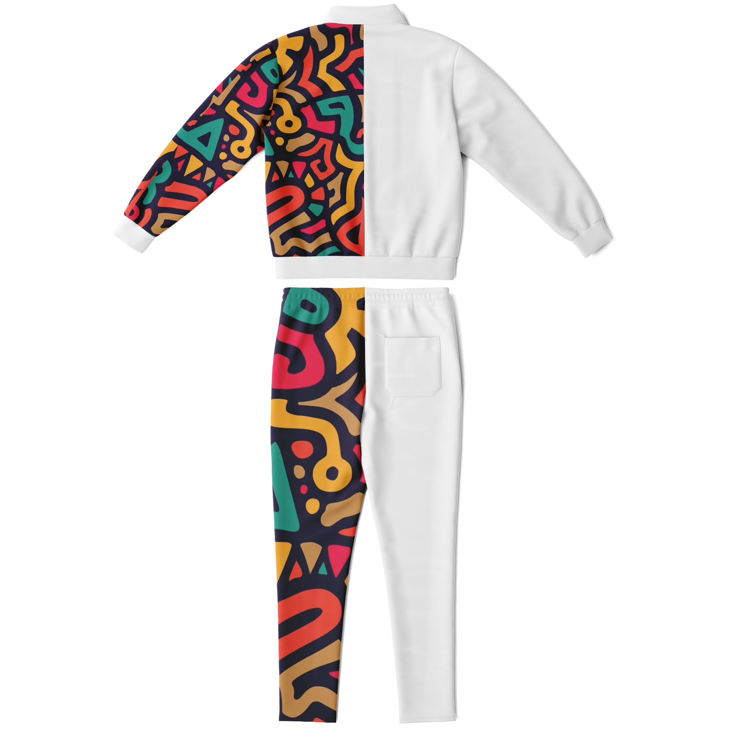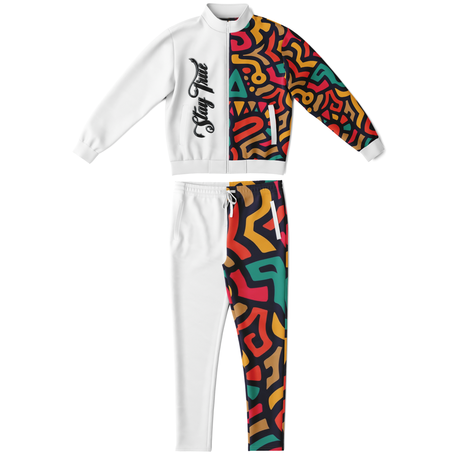 The smooth, tight-knit surface of the fabric ensures vibrant, detailed prints and colors. The tracksuit is as striking as it is comfortable, with a soft interior lining that feels great against the skin.