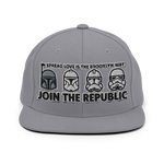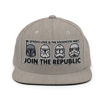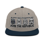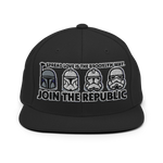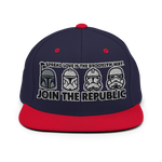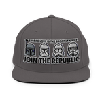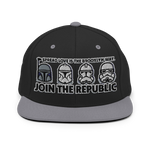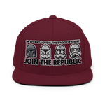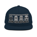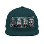 This hat is structured with a classic fit, flat brim, and full buckram. The adjustable snap closure makes it a comfortable, one-size-fits-most hat.